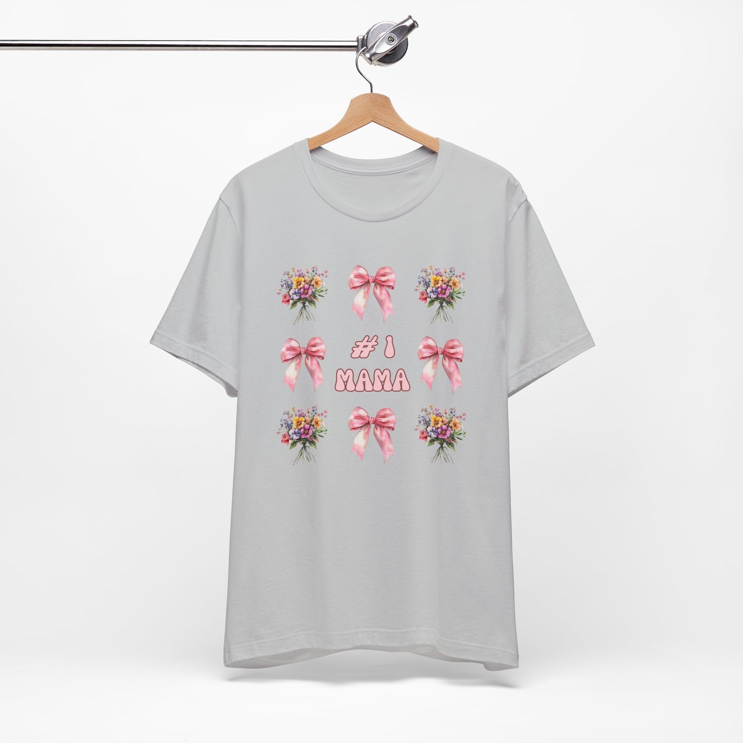 #1 Mama T-Shirt – Soft Cotton Tee with Pink Bows & Florals – Gift for Mom