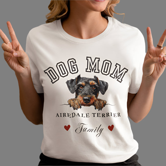 Airedale Terrier Mom Family T-Shirt - Mother’s Day Gift for Dog Lovers