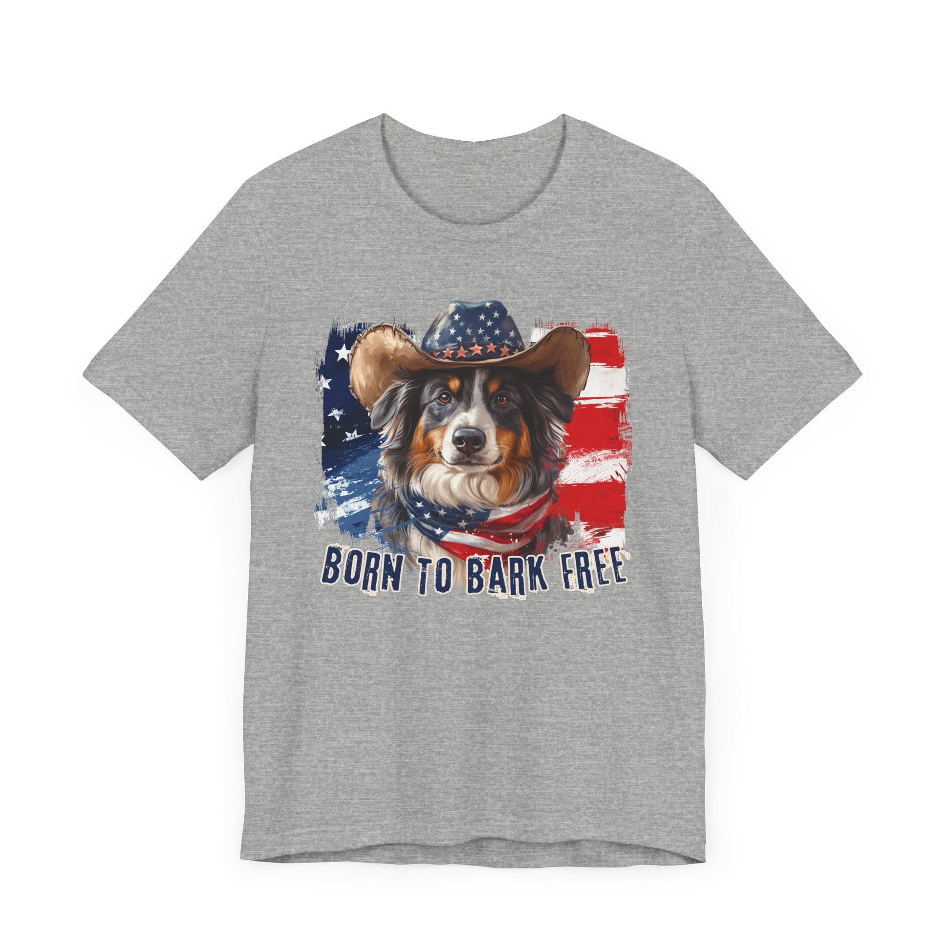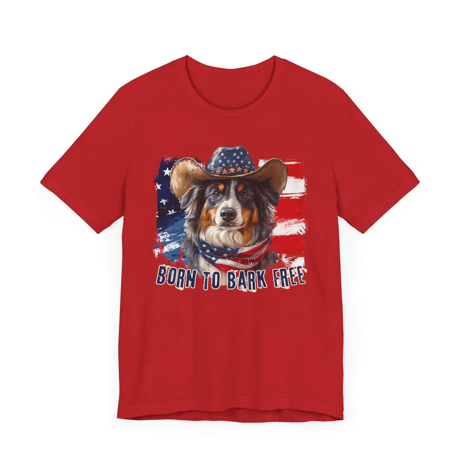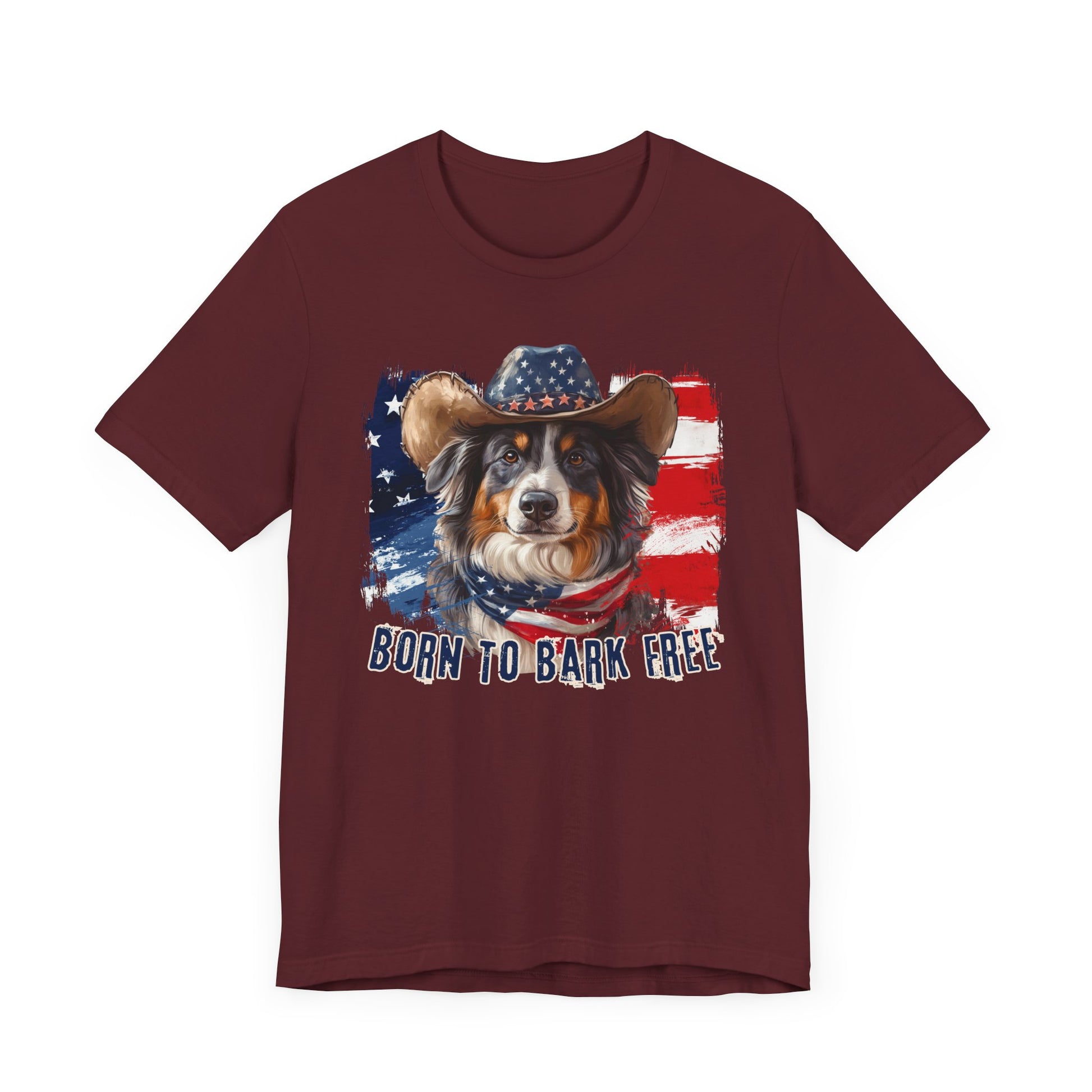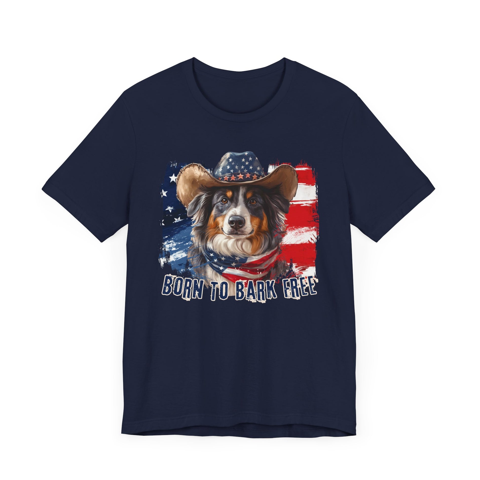 Australian Shepherd Patriotic T-Shirt "Born to Bark Free" - Dog-Themed Patriotic Design