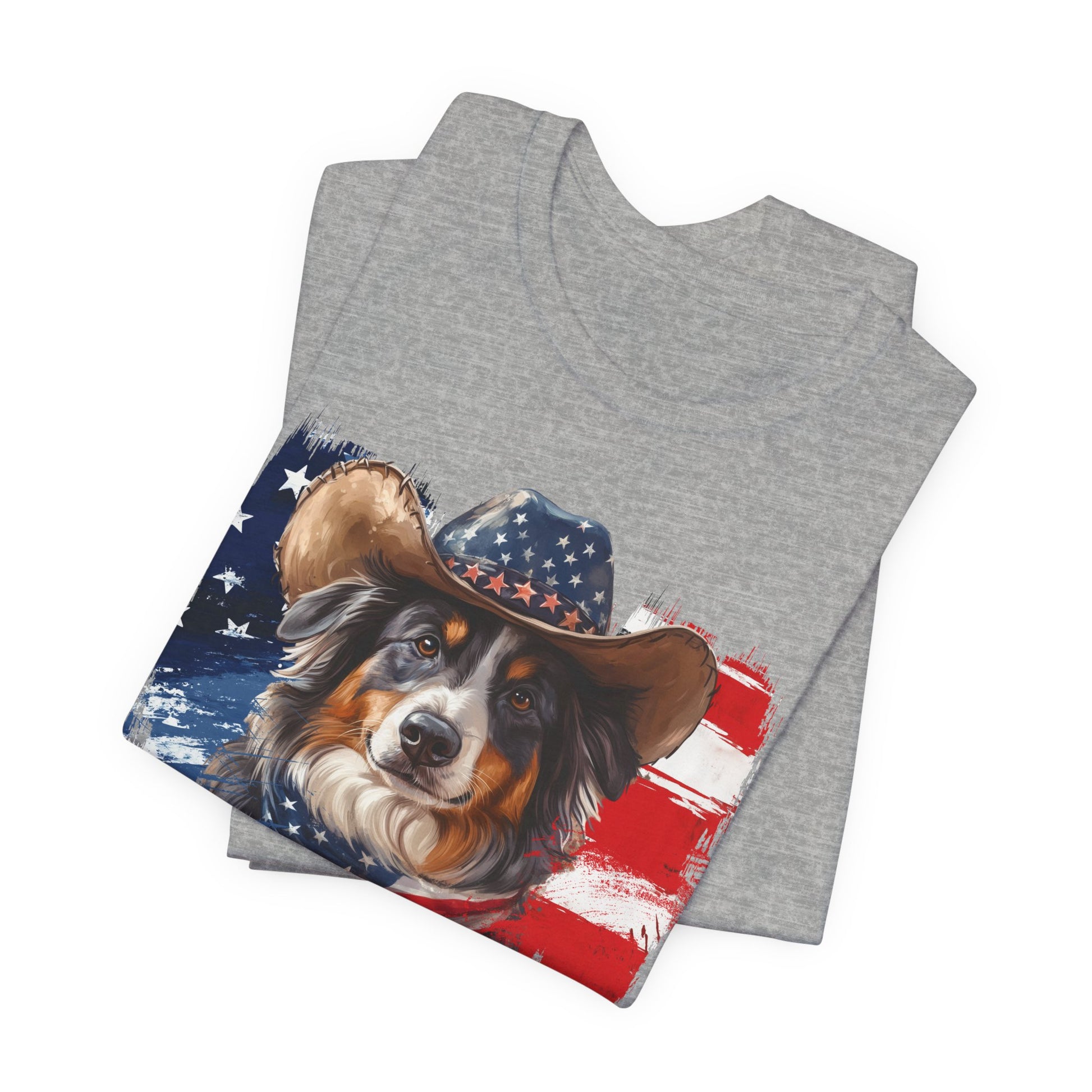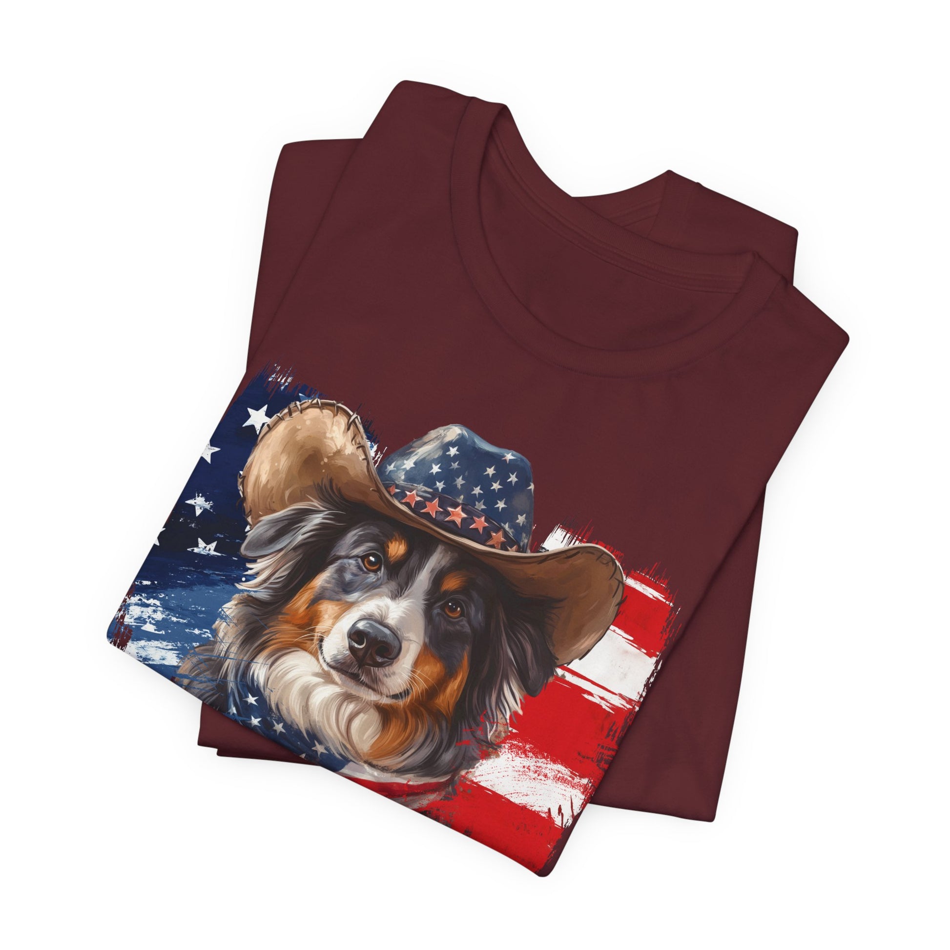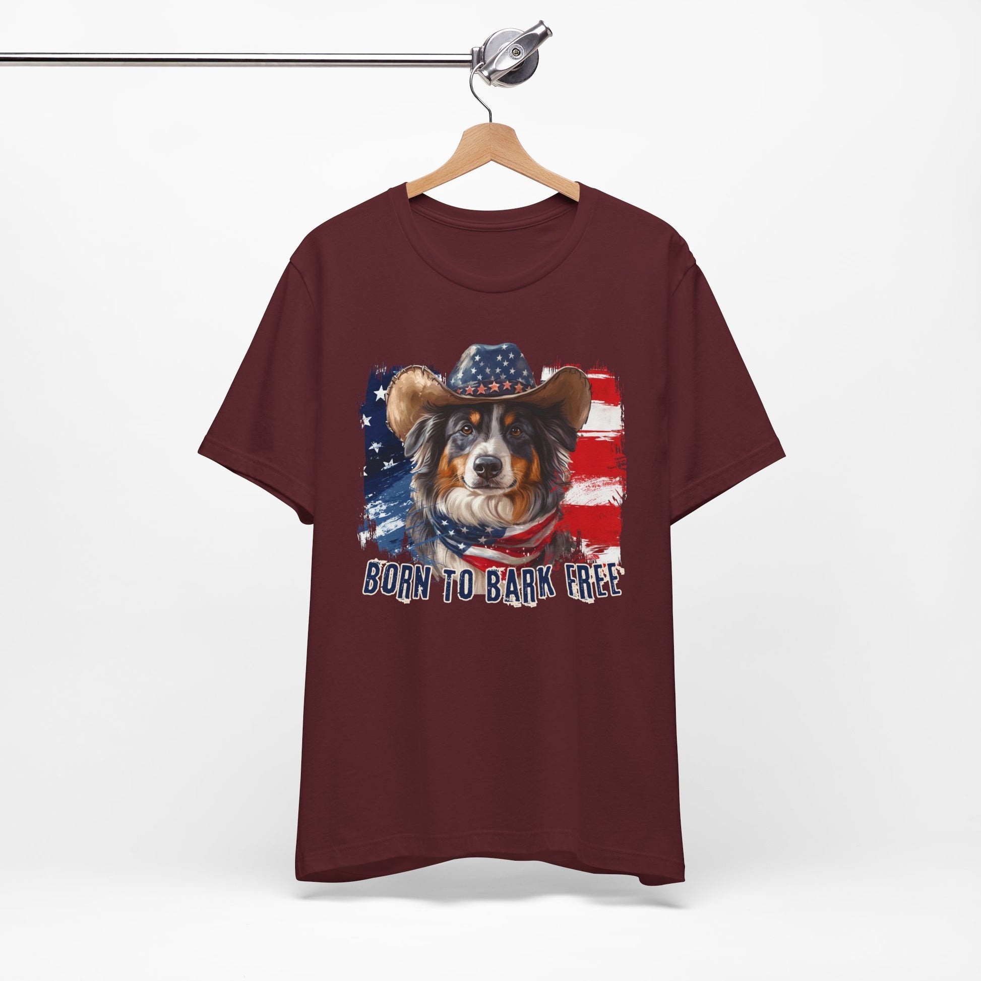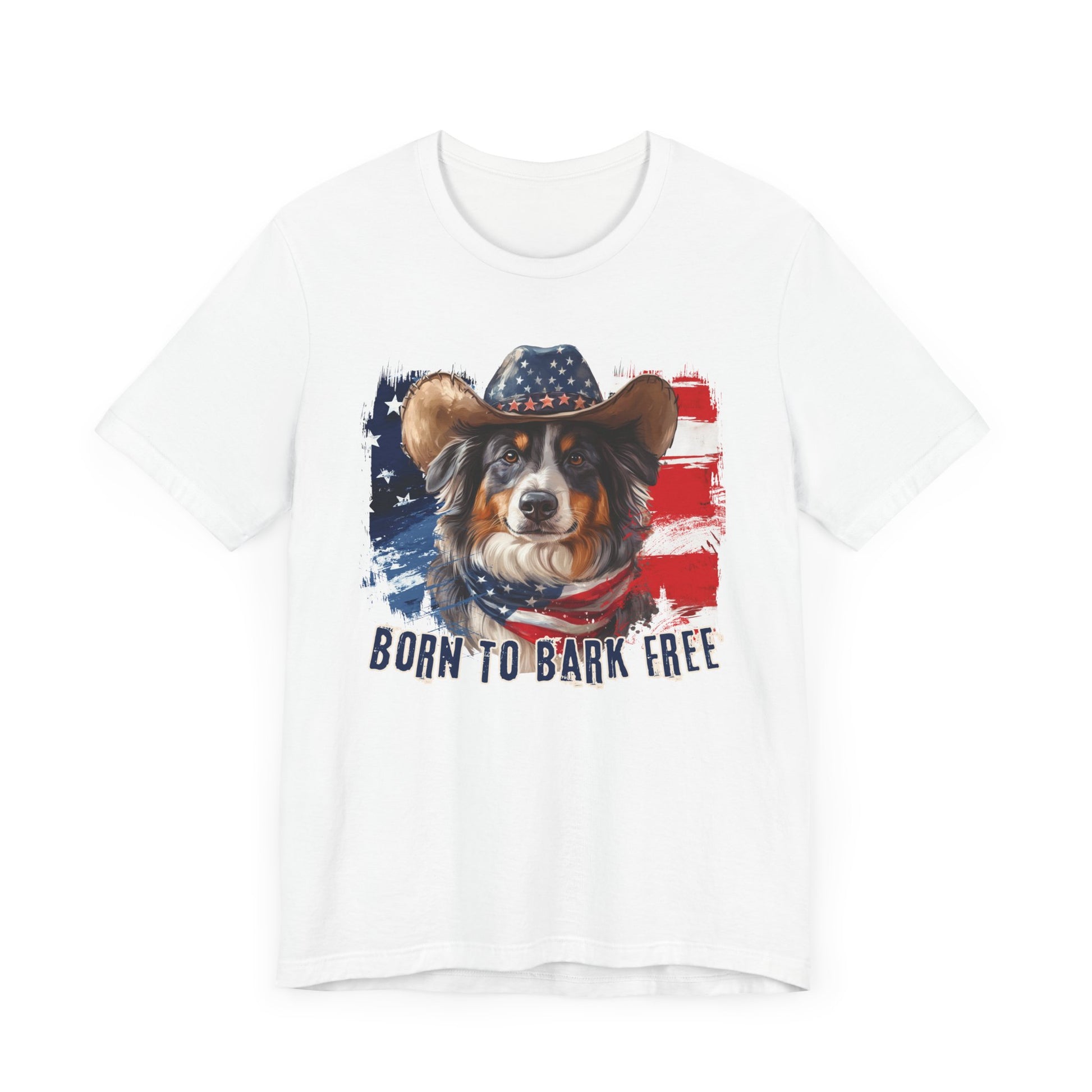 Australian Shepherd Patriotic T-Shirt "Born to Bark Free" - Dog-Themed Patriotic Design