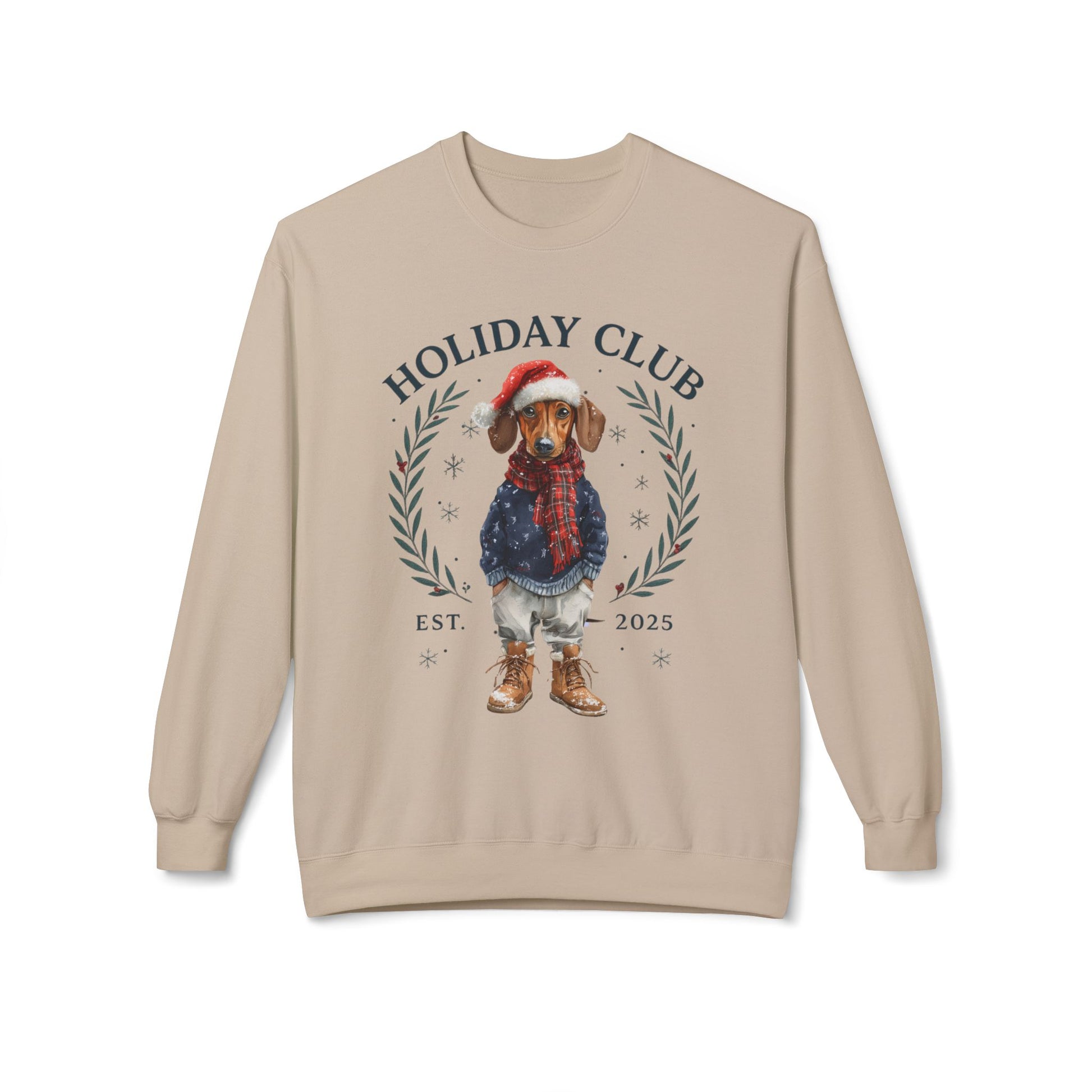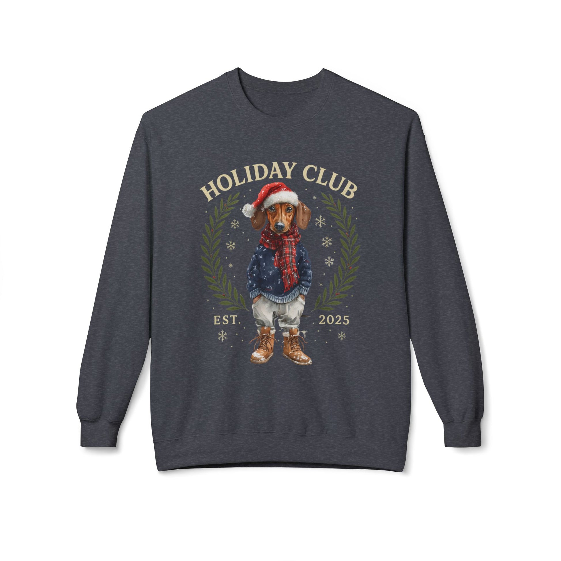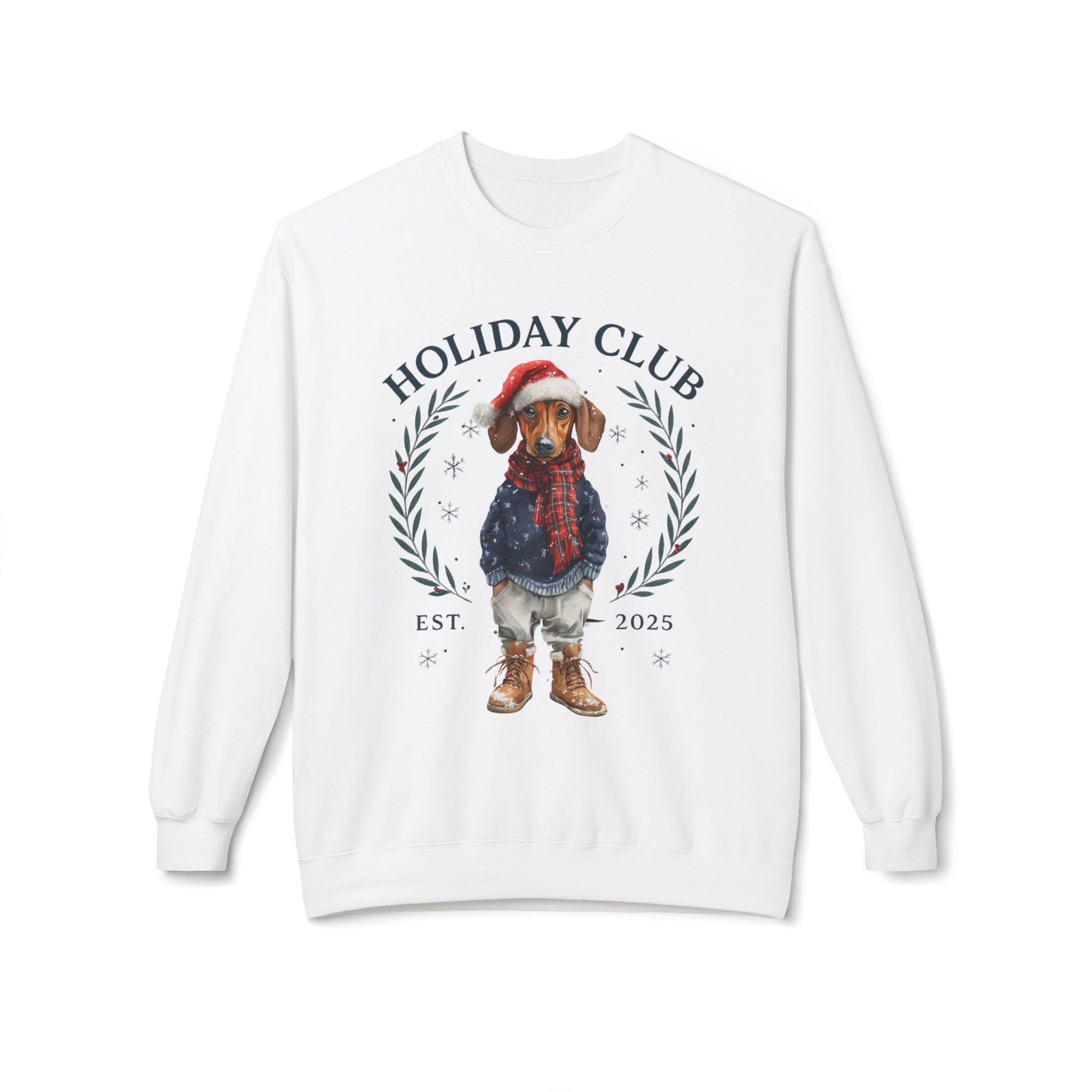 Festive Dog Lover Sweatshirt – Cozy Unisex Crewneck for the Holidays in chic style. Dachshund in a festive outfit, this cozy unisex crewneck blends holiday cheer with boutique fashion, making it the perfect gift for Dachshund lovers or a festive treat for yourself.