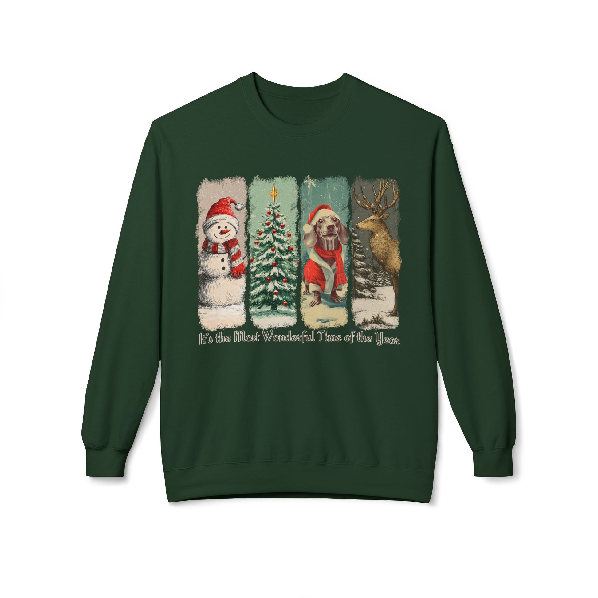 Vintage-inspired Dachshund Santa Christmas sweatshirt. Made with ultra-soft fleece and a modern, flattering fit, this cozy crewneck feels as good as it looks. Perfect for festive nights, family gatherings, or gifting.