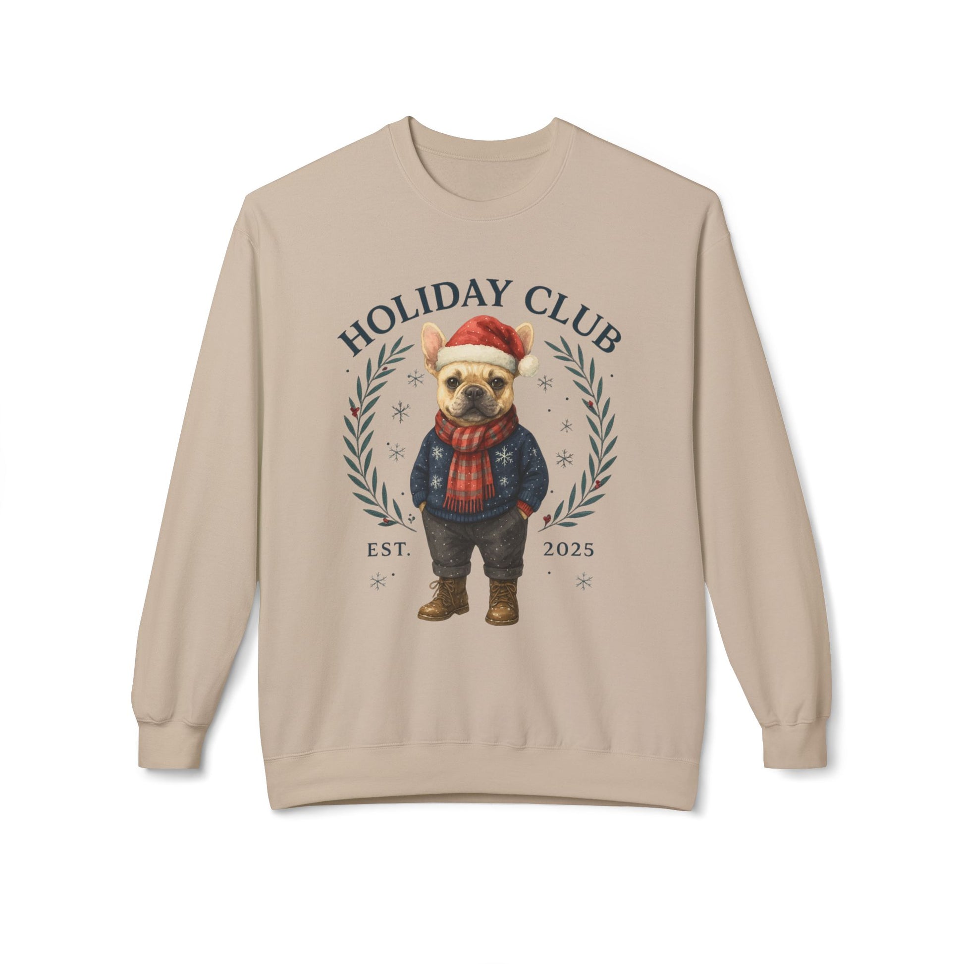 Festive Dog Lover Sweatshirt – Cozy Unisex Crewneck for the Holidays in chic style. Frenchie in a festive outfit, this cozy unisex crewneck blends holiday cheer with boutique fashion, making it the perfect gift for Frenchie lovers or a festive treat for yourself.