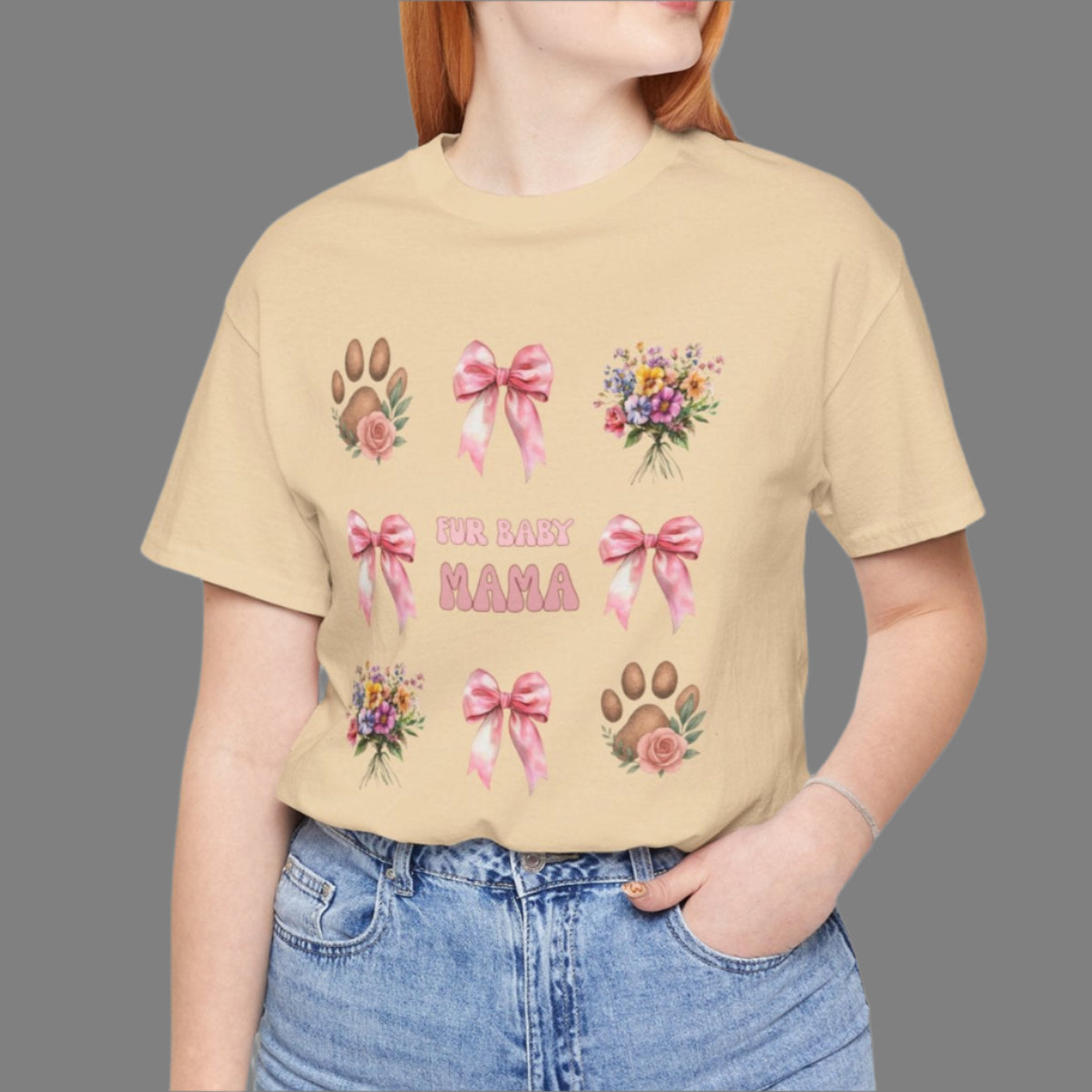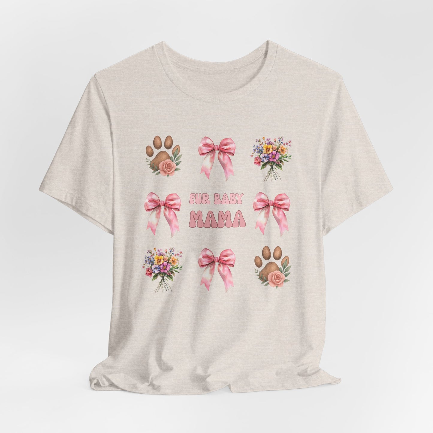 Fur Baby Mama T-Shirt – Soft Cotton Tee with Pink Bows – Gift for Pet Moms