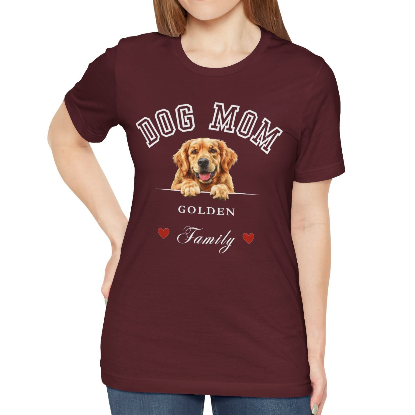 Celebrate the love between a dog and her mom with this soft and stylish Dog Mom Family T-shirt, featuring a heartwarming Golden Retriever illustration.