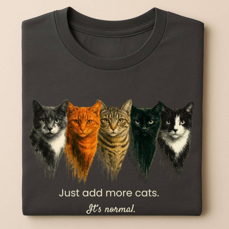 - Send us a clear front-view photo of your cat(s), your preferred shirt color, and size.
