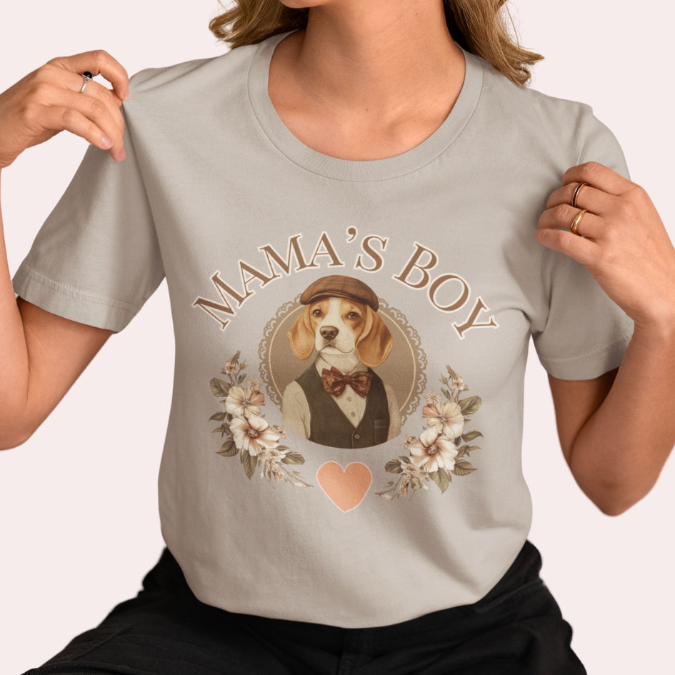 Designed for the Beagle moms who adore their little boys like family. This exclusive tee features a hand-crafted vintage-style illustration, capturing the elegance and charm of your pampered pup — complete with florals, lace, and that unmistakable “Mama’s Boy” bond.