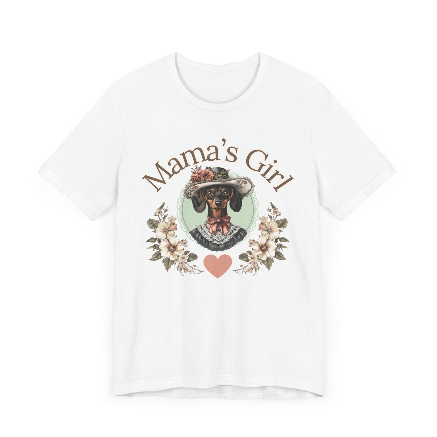 Designed for the Doxie moms who adore their little lady like family. This exclusive tee features a hand-crafted vintage-style illustration, capturing the elegance and charm of your pampered pup — complete with florals, lace, and that unmistakable “Mama’s Girl” bond.