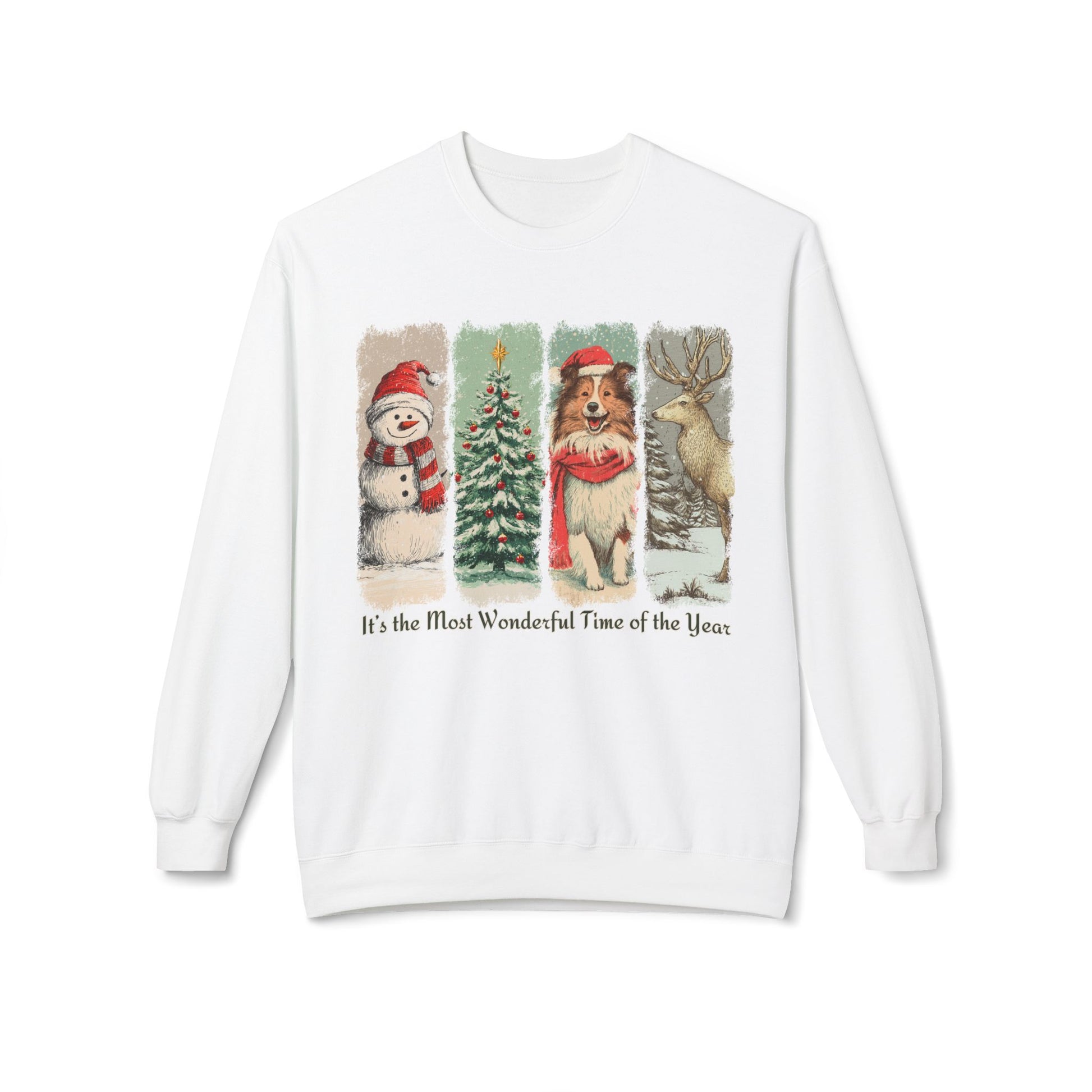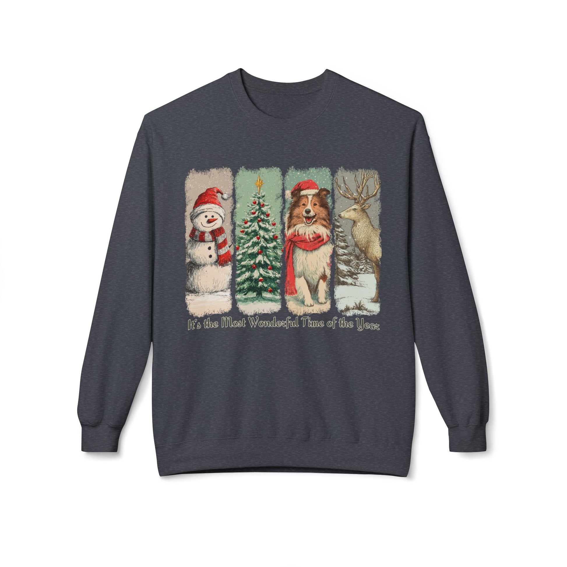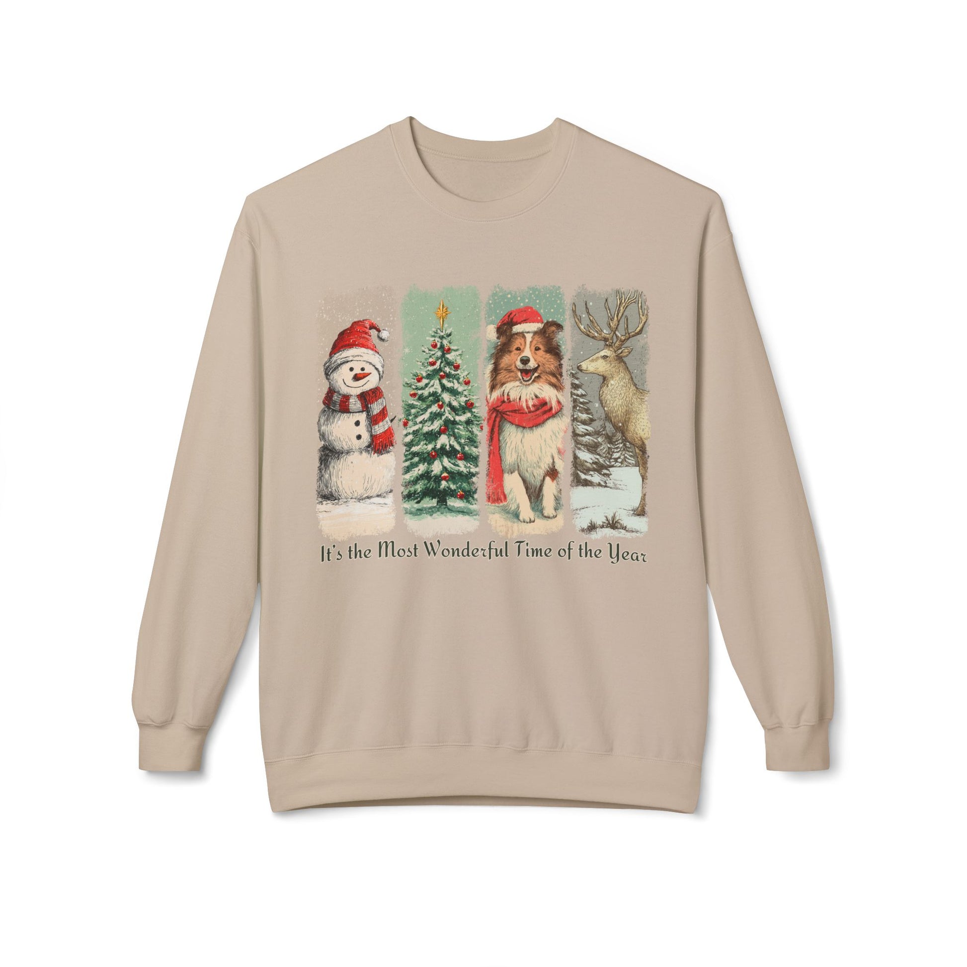 Vintage-inspired Sheltie Santa Christmas sweatshirt. Made with ultra-soft fleece and a modern, flattering fit, this cozy crewneck is perfect for festive nights, family gatherings, or gifting.