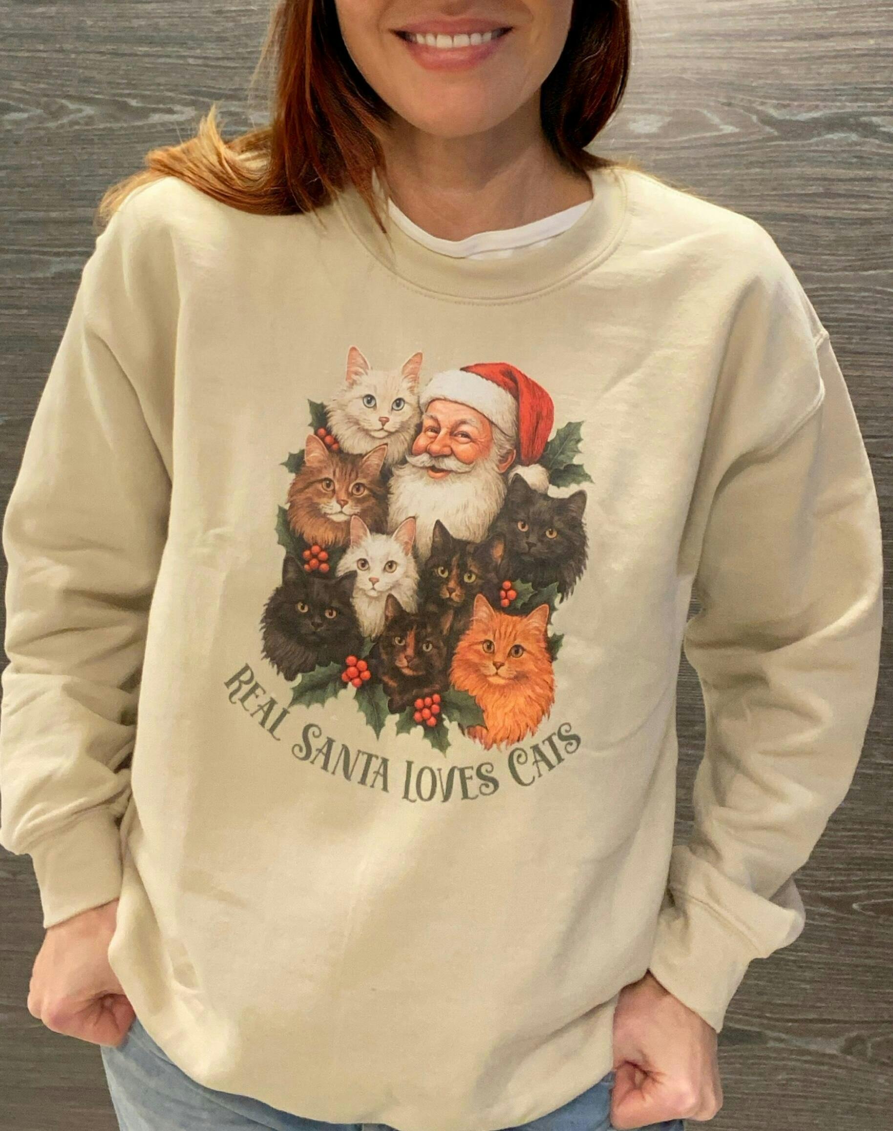 The Real Santa Loves Cats – Vintage Christmas Sweatshirt