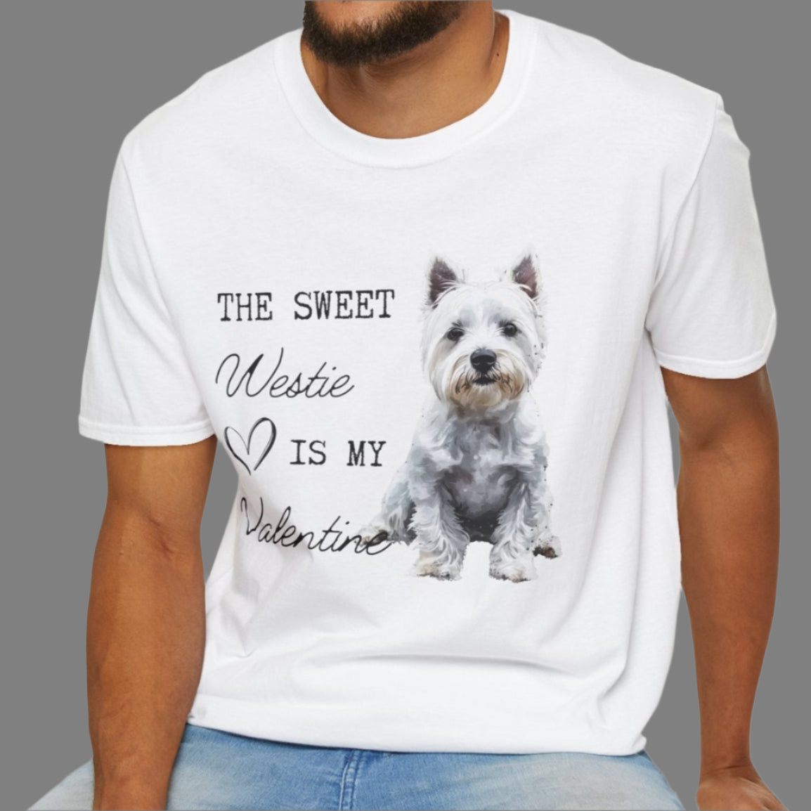 Valentine's gift for dog lovers and Westie fans! Whether you're a proud West Highland White Terrier parent or searching for a unique Valentine’s Day gift, this shirt features a heartwarming design and an illustration of your favorite breed—making it a thoughtful and stylish choice for any dog lover.