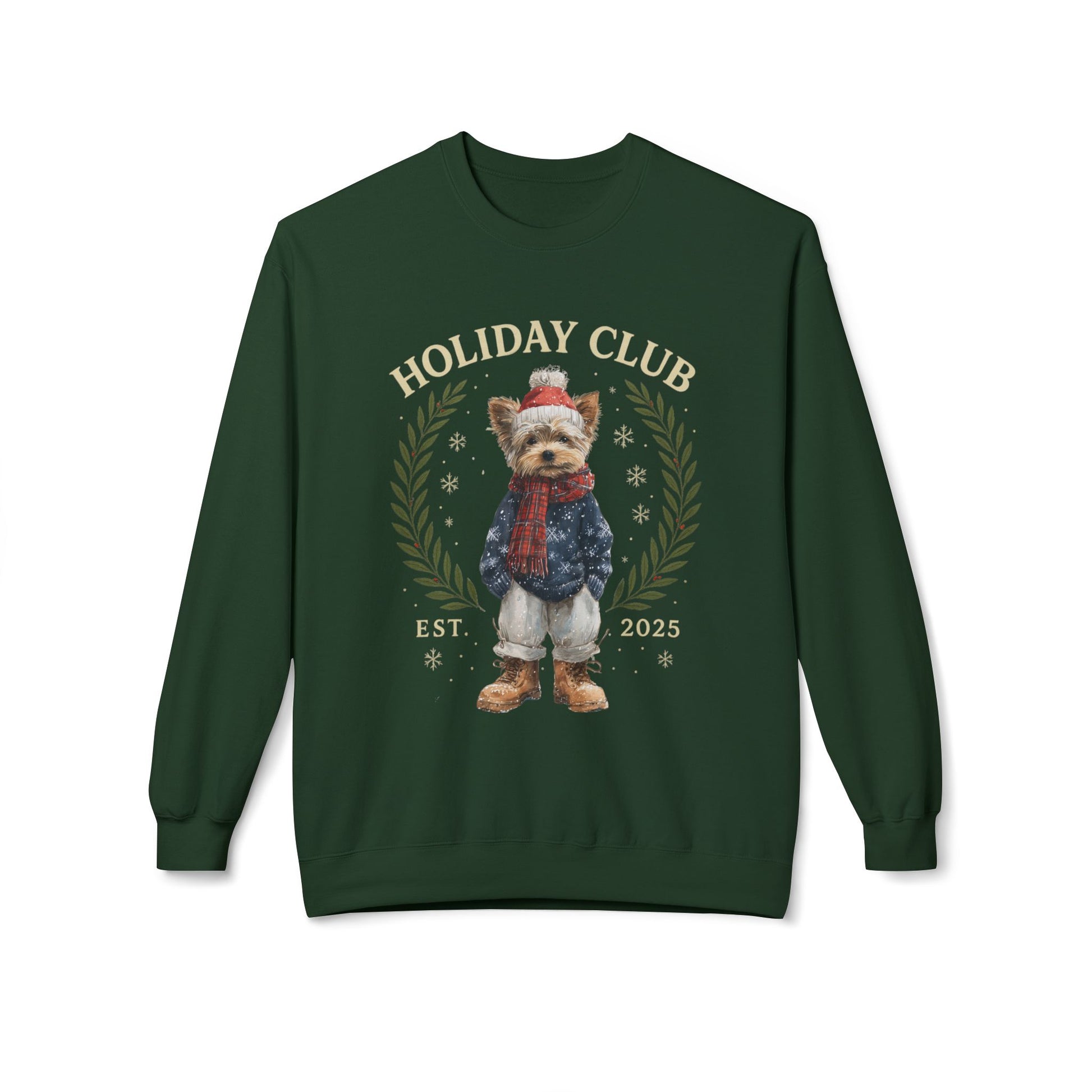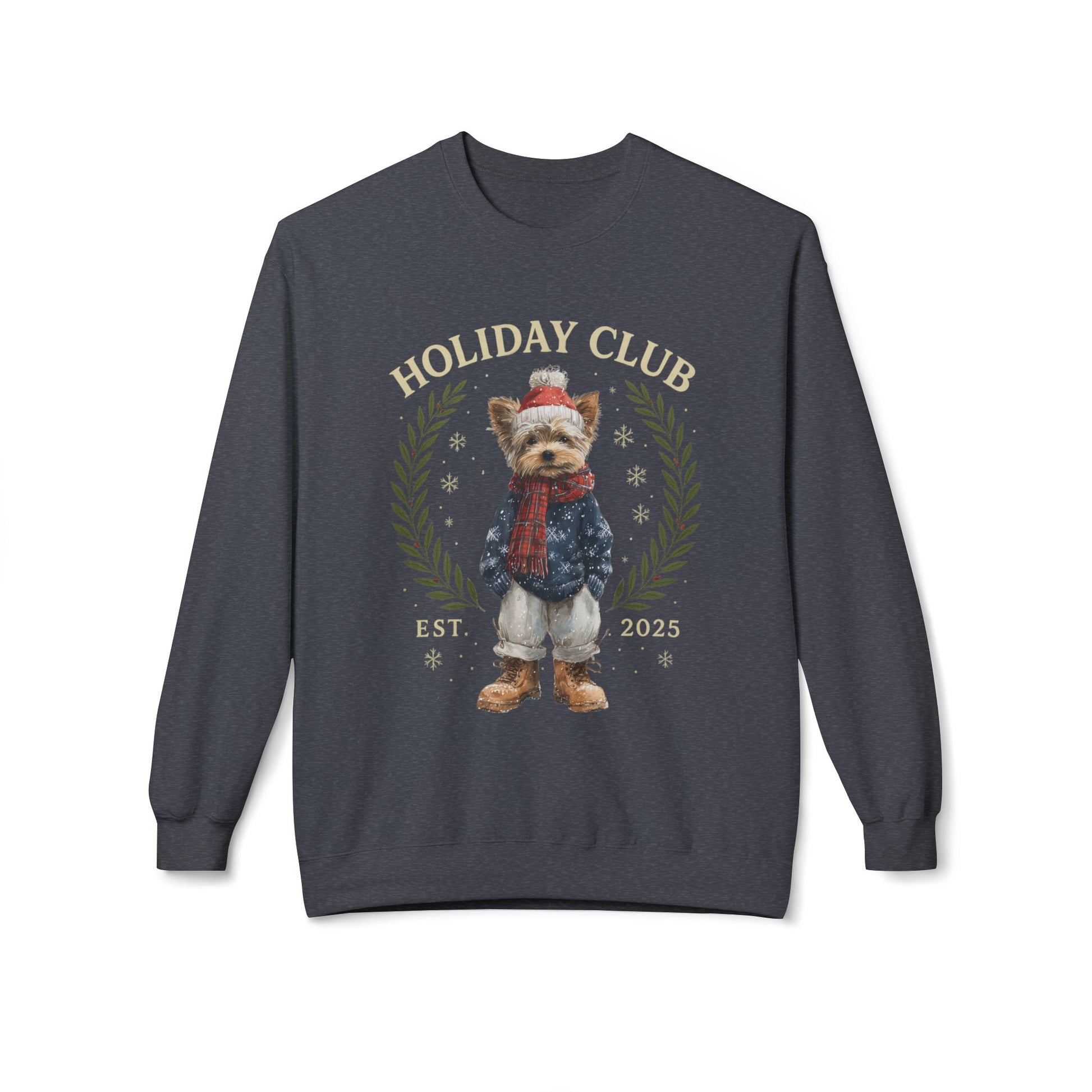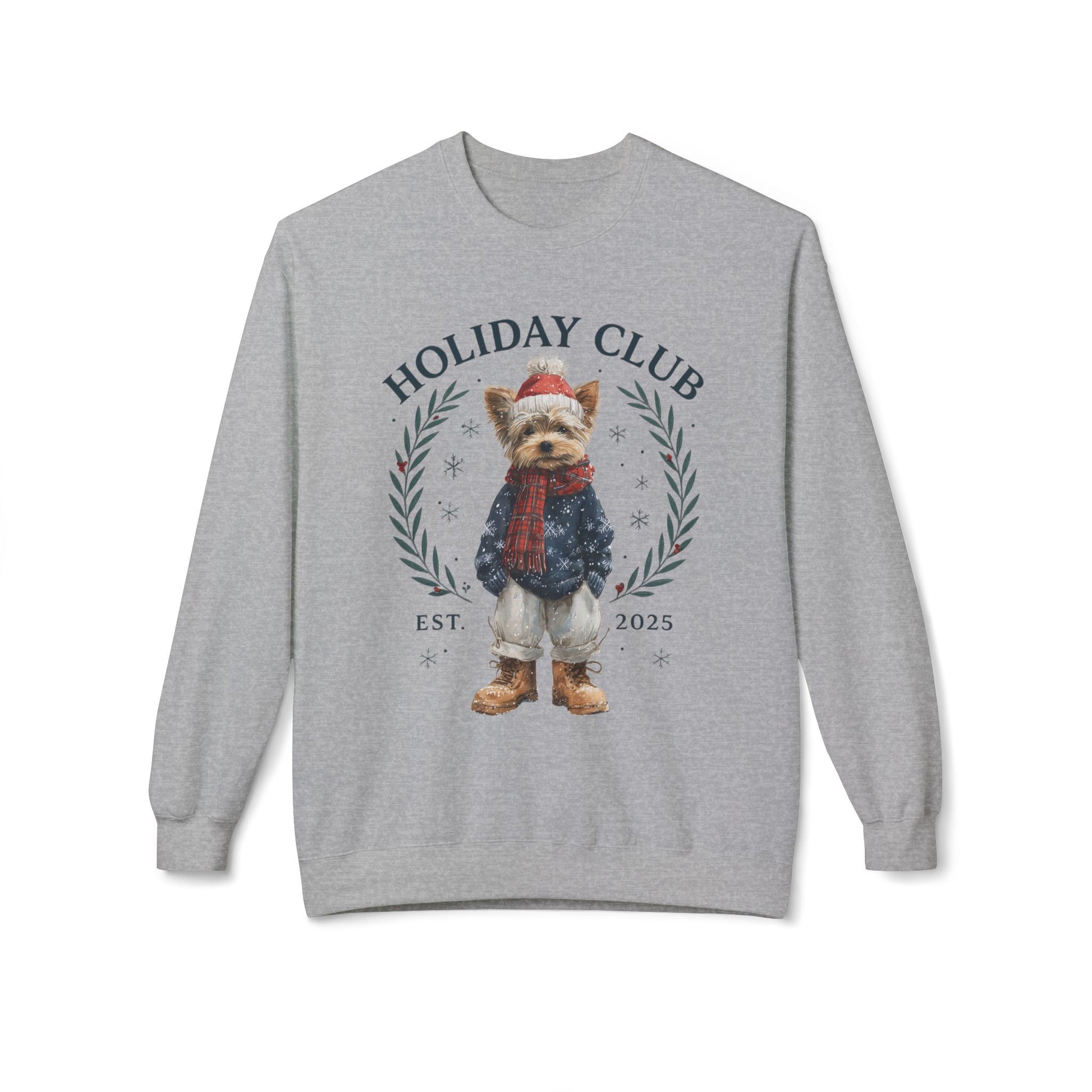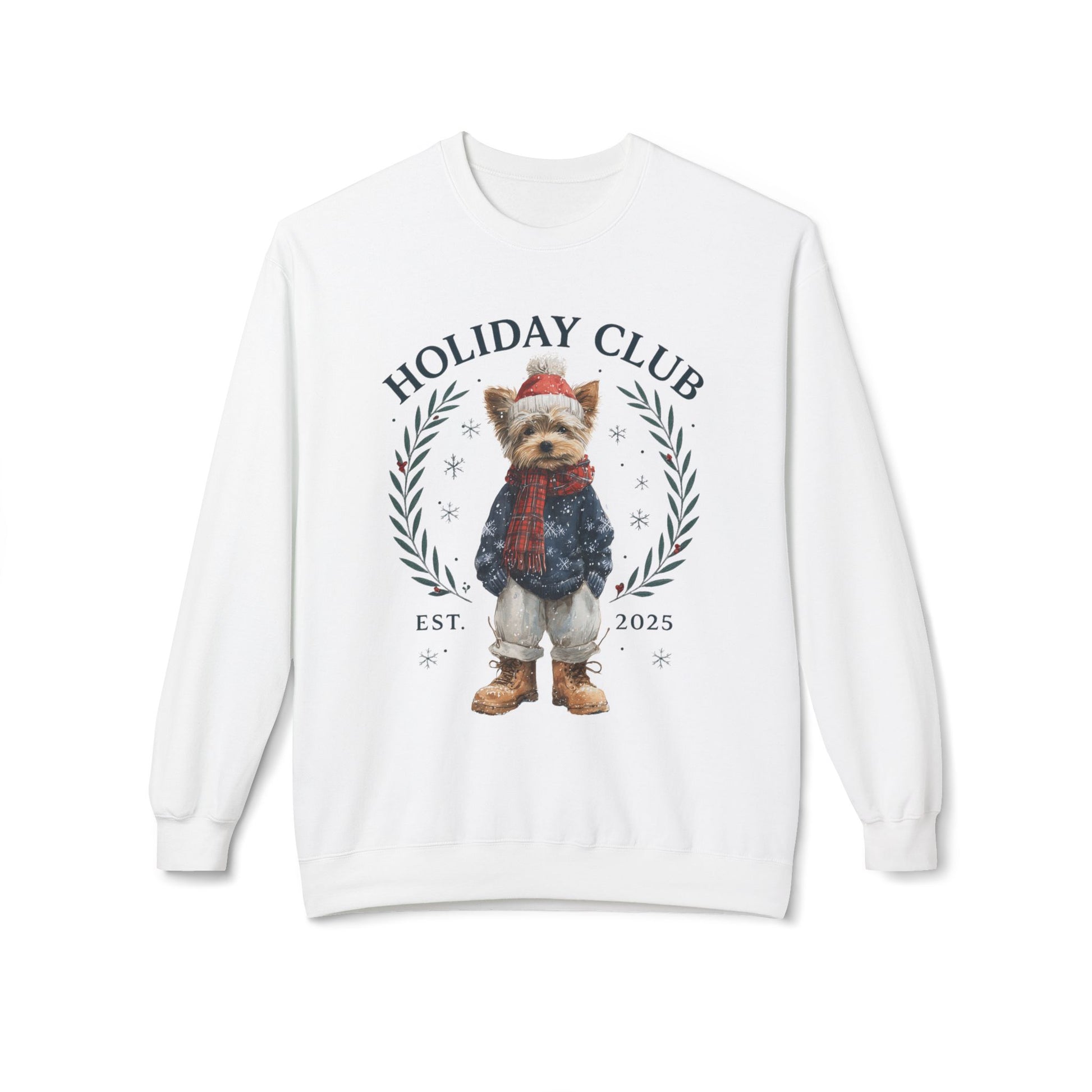 Festive Dog Lover Sweatshirt – Cozy Unisex Crewneck for the Holidays in chic style. Yorkie in a festive outfit, this cozy unisex crewneck blends holiday cheer with boutique fashion, making it the perfect gift for Yorkie lovers or a festive treat for yourself.